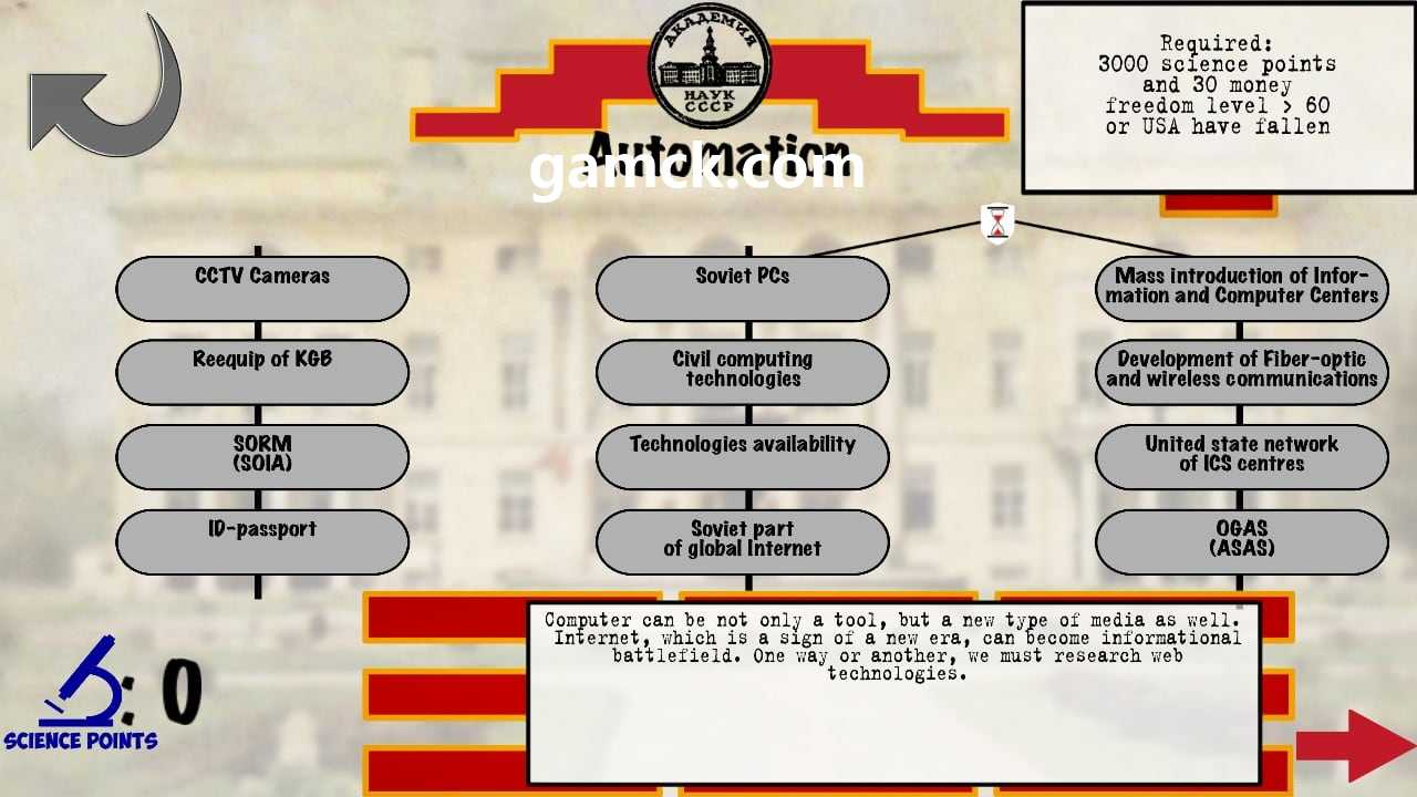 为了成功的游戏,历史和经济学的知识将足够最小。即使在非常轻的层面上,游戏也会让您流汗,因为玩家一直在我被迫做出不适合所有人的艰难决定。整个游戏都充满了社会主义改革的疲劳,由于古典苏联歌曲的配乐,气氛加剧了。在这种环境中注入党派秘书的形象。游戏的非线性是其主要优势之一。允许它几乎采取任何行动,直到用克格勃的手谋杀叶利钦。会有欲望。严格为玩家选择公共系统。有很多选择 – 从民主和资本主义到乌托邦共产主义或独裁统治的人格崇拜。