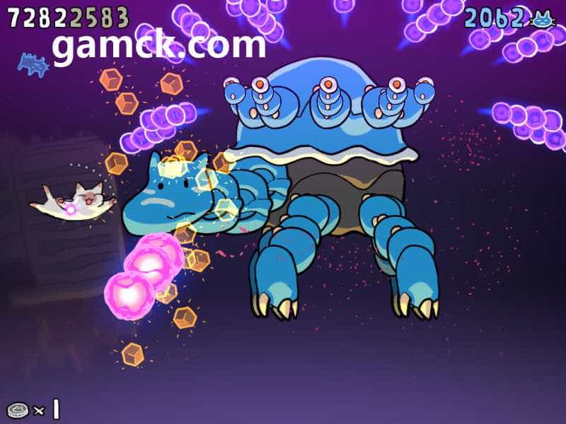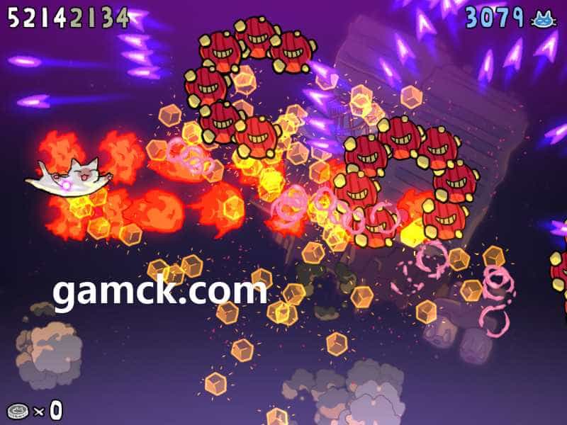 故事情节始终导致一个特殊的最终活动,旨在允许主要的阴谋并完成主要故事。 Neko Nevy的游戏玩法是建立在三个关键动作上的:火灾,从敌人的炮弹中逃避和使用特殊炸弹。生存直接取决于在摧毁敌方单位的同时,在密集的,几乎连续的子弹中操纵的能力。一组眼镜的中心力学鼓励了频繁使用炸弹,因为每次爆炸都直接增加了最终得分。