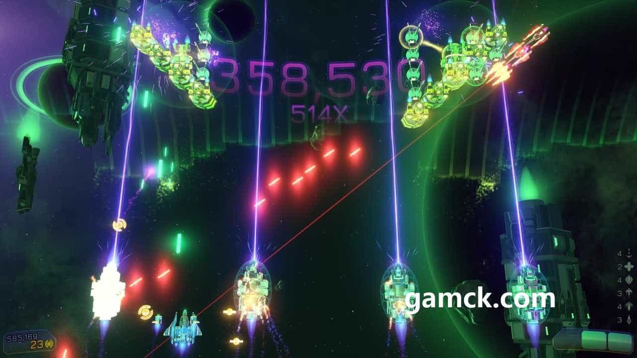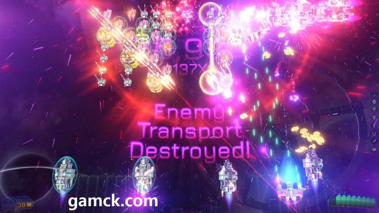 在游戏玩法方面,独立Taytl类似于街机经典太空入侵者。在击败入侵者中,敌人在海浪中攻击。除了普通的战斗外,还有老板和小型活动的战斗。在战斗和事件之间的休息时间,游戏玩家可以升级其运输工具和他的子系统。如果需要,他可以重新分配改进。在他们的帮助下,您可以增加子弹的传播,增加火率,恢复身体,加速重新加载。玩家使用游戏板,键盘或鼠标控制他的船。飞机能够向左和向右移动并在屏幕上射击。不仅有必要摧毁竞争对手,还必须保护太空卡车。如果所有这些都爆炸,则用户将计算失败。当他通过时,开放了新的飞船和其他级别的复杂性。