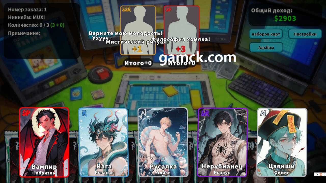除了履行订单外,玩家还可以专门收集带有卡片的可用专辑,努力完成所有系列。该模拟器是卡片式模拟器,是一个项目,游戏玩家承担彩流人打开卡的职责,其主要任务是通过拆卸众多卡片套装来赚钱。收入是通过处理客户应用程序在观众面前打开各种包装的应用程序而产生的。