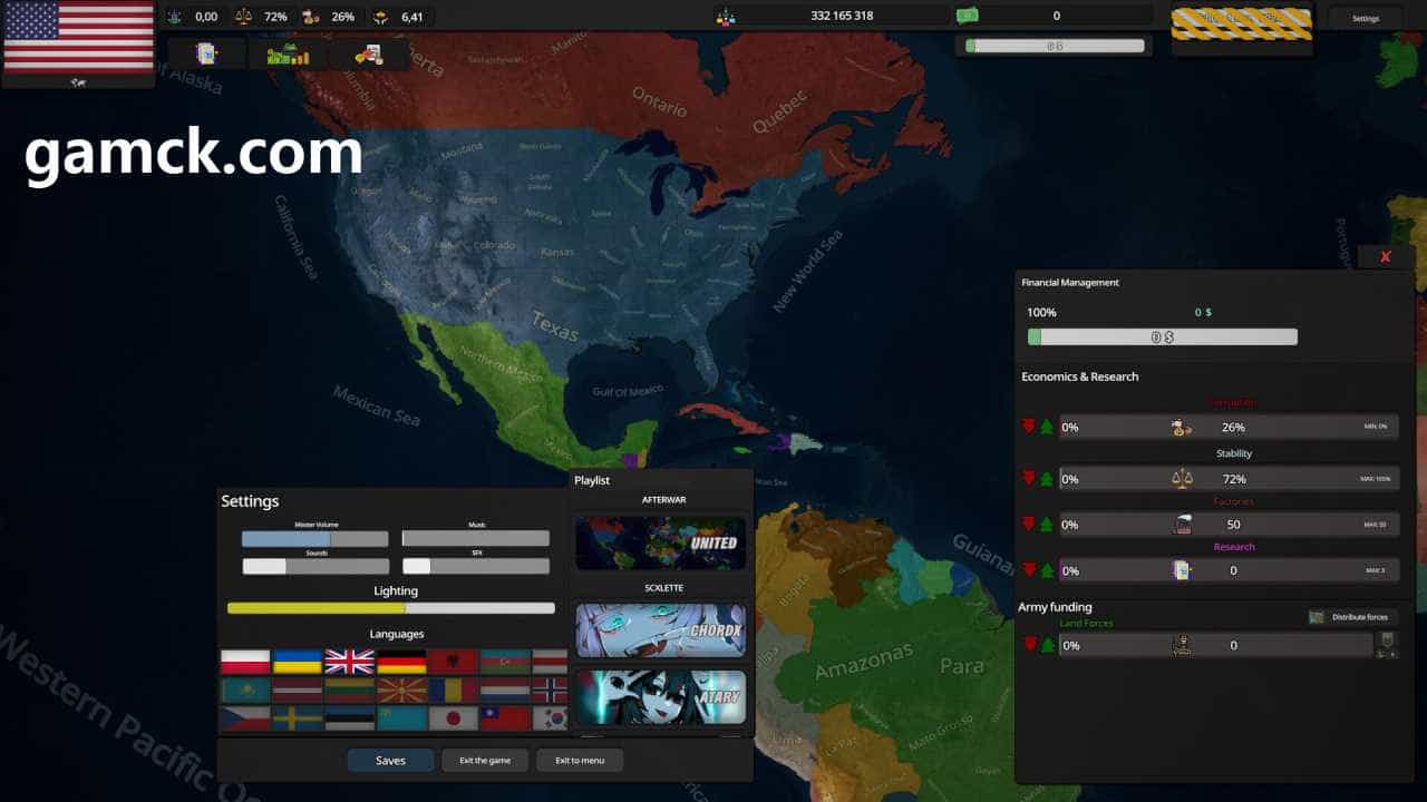 事件的进一步发展完全取决于这些选举。富当时的游戏过程实时发挥作用,将经济增长与居民的政治和社会成果联系起来。玩家必须面对世界经济危机等现象,并在公民的利益之间找到妥协,管理国家的预算。项目力学考虑了影响权利风格的国家腐败,秩序和伟大的因素梯子。