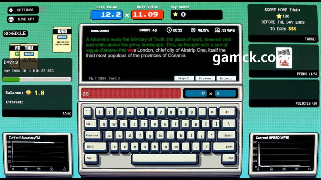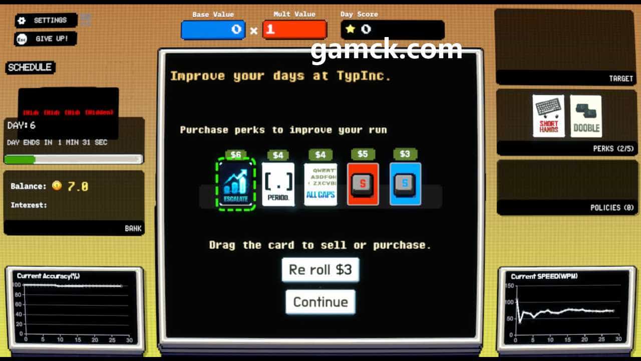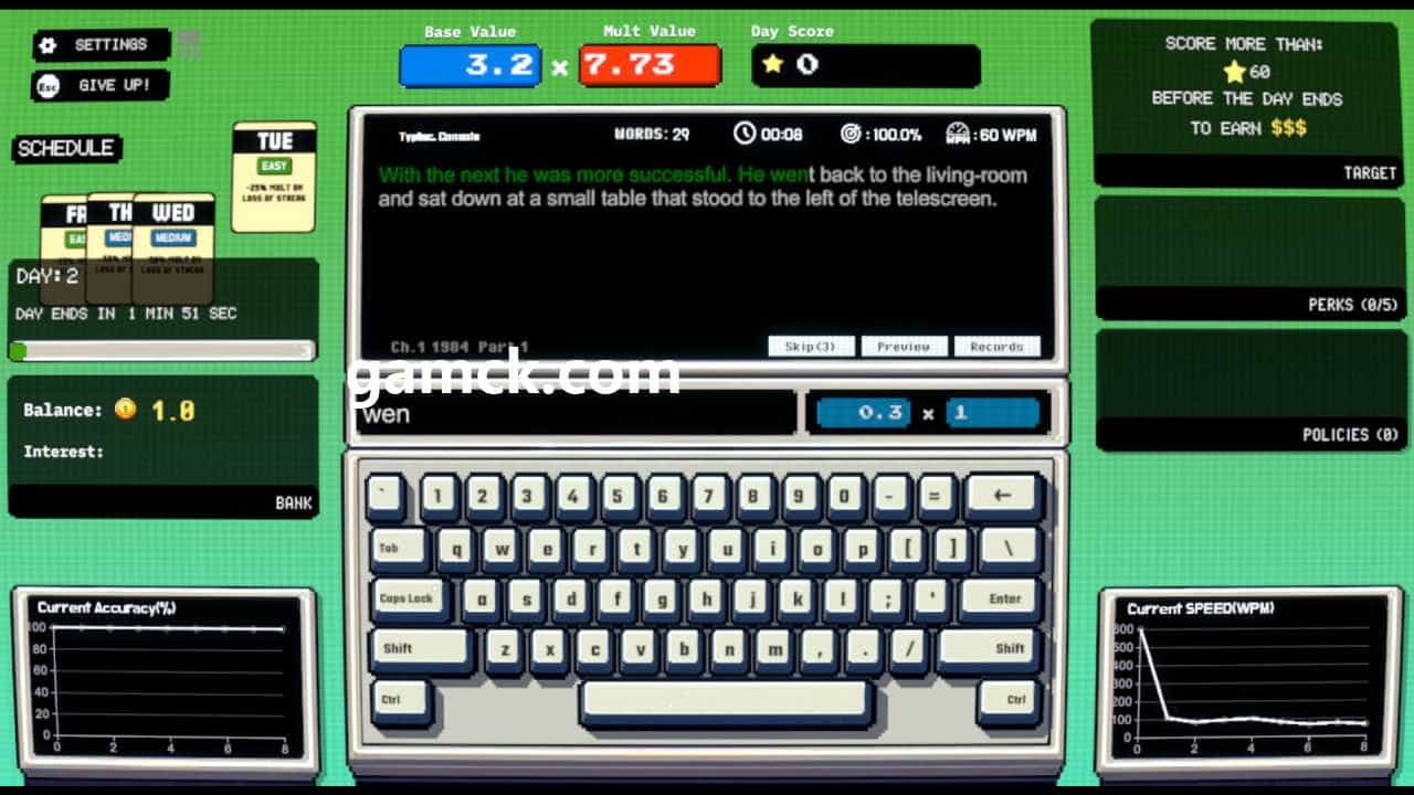 打字。 提议招募文本的段落,这是其核心活动。生存取决于保存连续的一系列准确按压 – 晋升和最终胜利的必要条件。该过程将口头游戏的直接输入与在Roguelike类型中建造甲板的系统中固有的战略要素结合在一起。文本指令的实施是主要的机械功能,它使在不断生存的斗争条件下保持速度和顺序的任务。