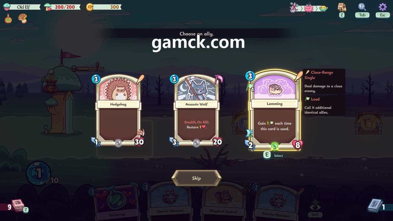 对手的力量正在增长随着内部群的周期从白天变为暮光和夜晚。为了占上风,必须相应地加强玩家。该进度包括获得各种动物图来编译甲板。掠夺的生物可以配备帽子,从而产生某些增强作用。该策略还可以通过收集精灵技能和文物的地图来形成,这是执行任务并在骇客和斜线转移中取得胜利的任务的组成部分。