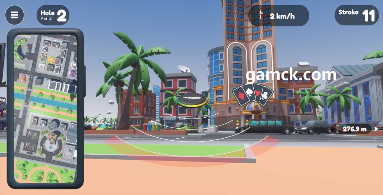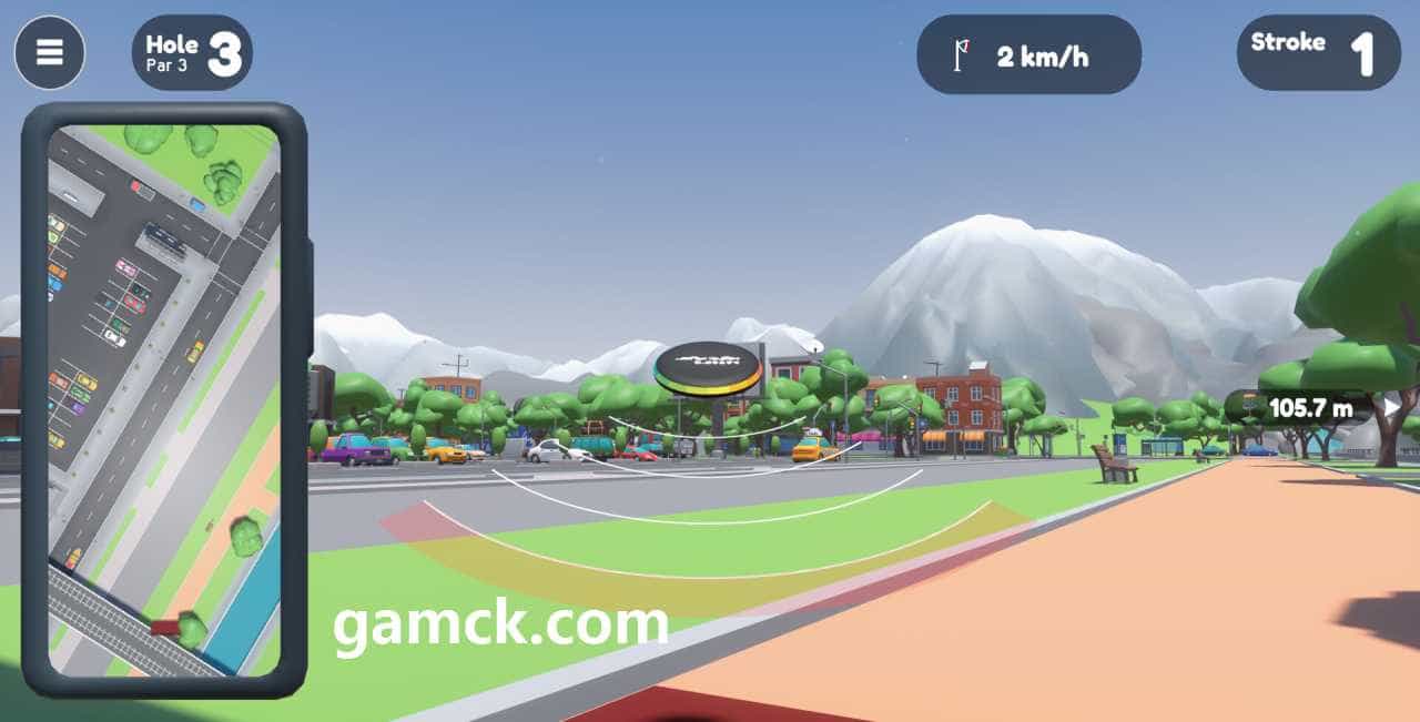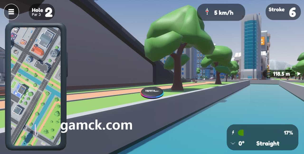 唱片高尔夫球城游戏玩家发现自己位于风格化的城市地点。主要的任务是放弃目标篮中的外壳,以进行最小尝试。磁盘驱动器的路径必须通过公园,正方形和屋顶铺设,将混凝土丛林变成运动舞台。物理模型控制弹丸的​​轨迹及其与表面的碰撞,需要确切的每个发射的角度和强度计算。