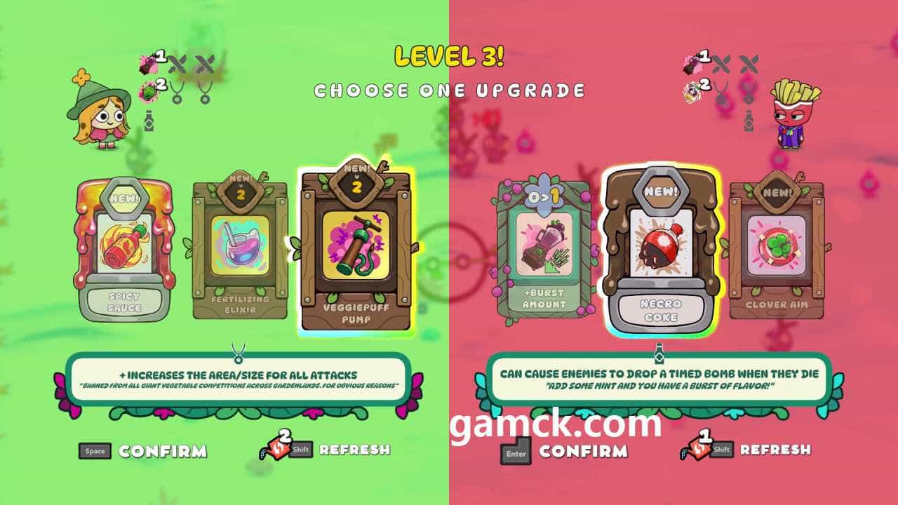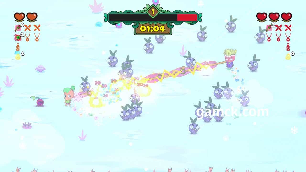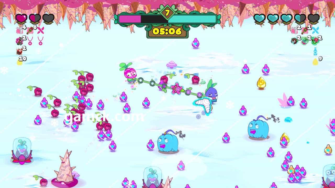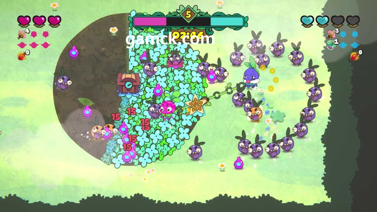 游戏专注于各个方面的合作。玩家必须共同开放宝藏,选择改进并在最困难的地方相互恢复。每次成功的段落都有可以用于解锁新物体,武器和角色的金色种子。这样的系统使玩家有机会创建独特的组合并建立强大的组合,这使每个比赛都独一无二。通过单一通道,魔术藤受到魔术仙子的控制,该仙女将重复用户的动作,保持独立。