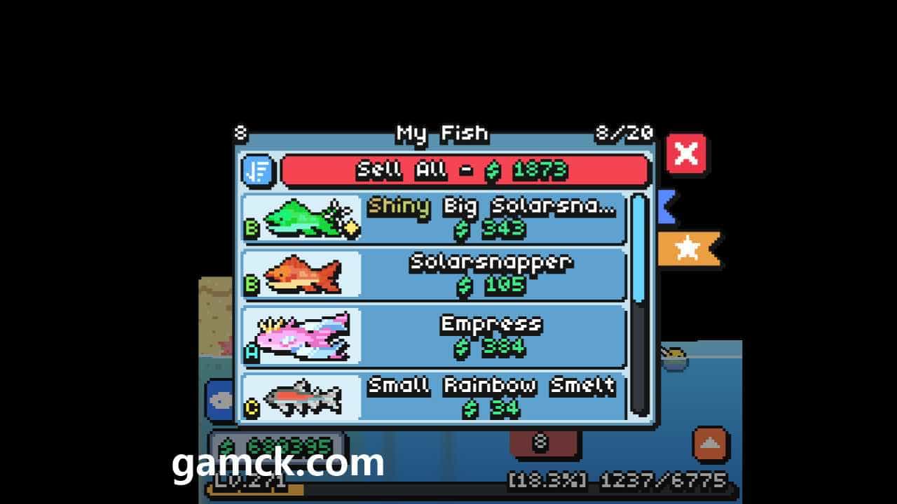 CornerPond的促销是建立在捕获物的积累和合格的资源处置之上的。可以通过接收开发产品出售捕获的副本。将来,这笔钱将有助于购买装备的现代化,例如,捕鱼和各种类型的诱饵的改进。一个重要的任务是找到并将可访问的游戏生物群落中的100多种鱼类带到目录中。您正在带领一本杂志来庆祝您的发现,并努力收集一大批可用的生物。