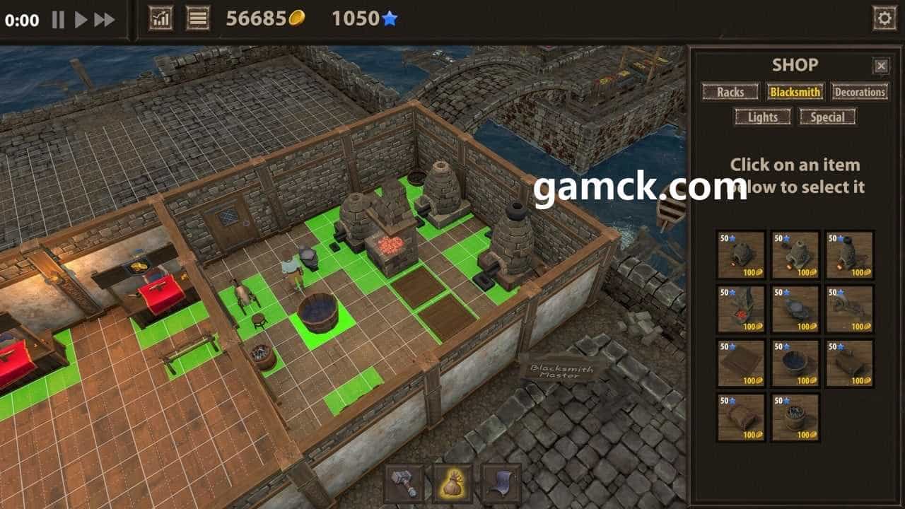 您的铁匠是一个狭窄的中世纪城市的小巷 – 最初,它是一个适度的铁匠,但您有伟大的潜力。在这里,您可以控制整个生产链 – 从矿石的提取到将它们融化成锭,然后创建武器,装甲,工具和珠宝,以便将其出售。您将开发商店的设计,以最大程度地提高空间并确保商品的生产和销售,并增加个人笔触以复兴无聊的地方。