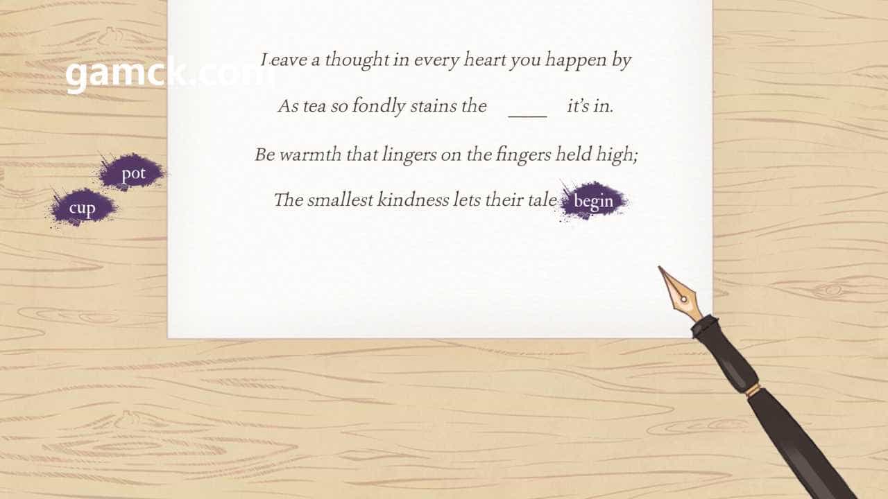 SIPS和十四行诗将玩家转移到一个安静的英国小镇,扮演Medouz小姐的角色 – 养老金记者管理一家茶店。她在一家小商店中投入了适度的积蓄,进行了几天的时间,以维持访客并听他们的故事。每次对话成为她晚上创造力的灵感来源 – 写诗。每天都担心在准备长期以来最好的朋友到来的准备背景下,这次访问成为叙事的中心事件。